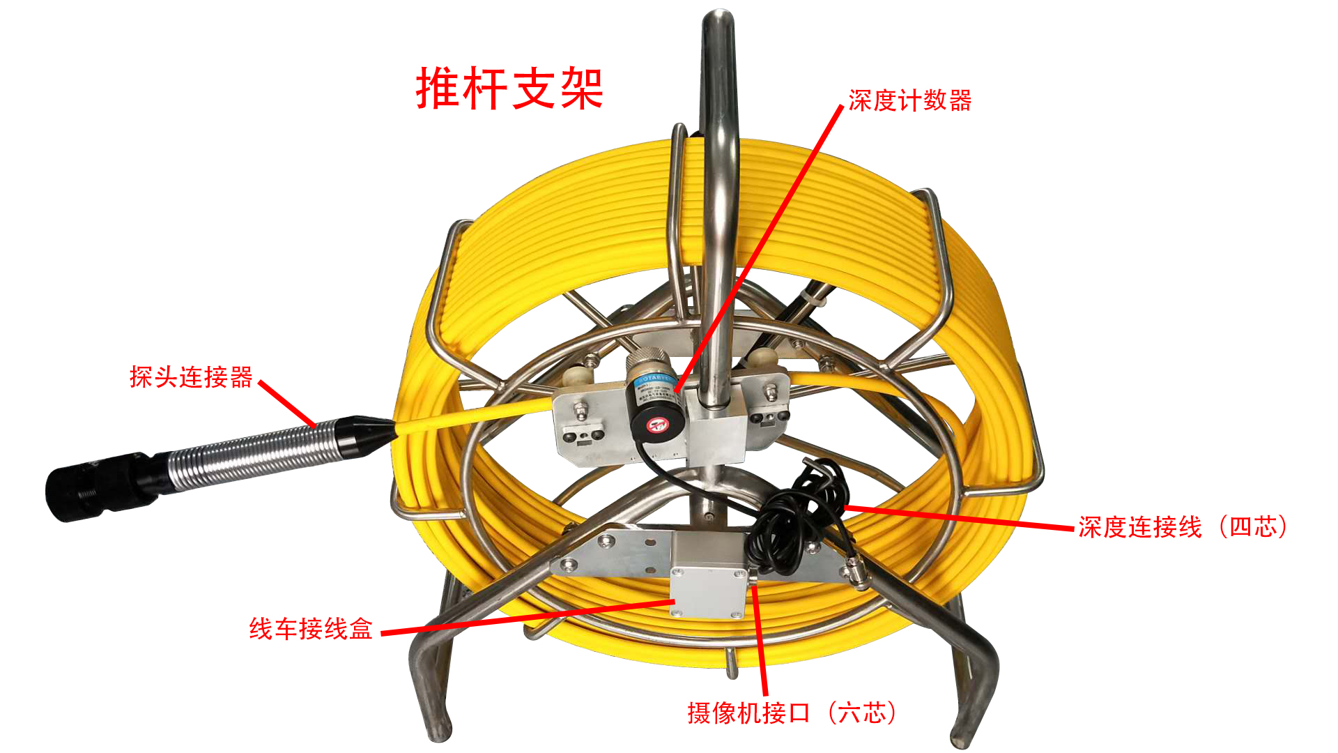 我公司新開(kāi)發(fā)的360度旋轉(zhuǎn)推桿管道內(nèi)窺鏡.從10米一300米.可在控制箱上手動(dòng)控制管道內(nèi)攝像頭的方向角度.光源的亮度.調(diào)整焦距.實(shí)時(shí)記錄深度.截圖.視頻放大.